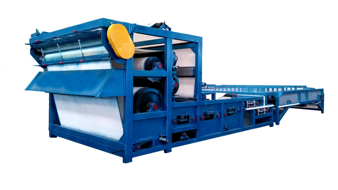 壓濾機(jī)是洛陽(yáng)隆中重工在引進(jìn)壓濾技術(shù)基礎(chǔ)上研制成功的新機(jī)型, 該設(shè)備是通過(guò)兩條濾帶纏繞在系列順序排列、大小不等的輥輪上,利用濾帶間的擠壓和剪切作用,來(lái)脫除料漿中水分的種壓濾設(shè)備,具有著能連續(xù)作業(yè)、自動(dòng)化程度高、節(jié)能、使用維護(hù)方便等優(yōu)點(diǎn),是種進(jìn)行污泥脫水減量化處理的好設(shè)備。